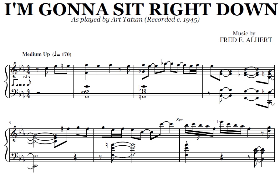 Buy the note for note transcription of I'm Gonna Sit Right Down (And Write Myself A Letter) by Art Tatum, from the original recording. You will be able to download the PDF sheet music as soon as the payment is complete.