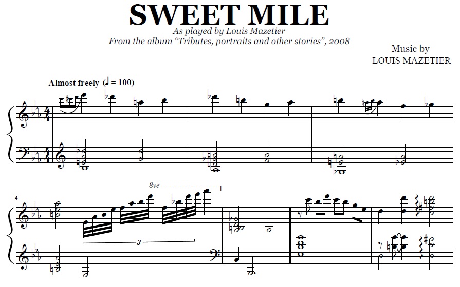 Buy the note for note transcription of Sweet Smile by Louis Mazetier, from the original recording. You will be able to download the PDF sheet music as soon as the payment is complete.