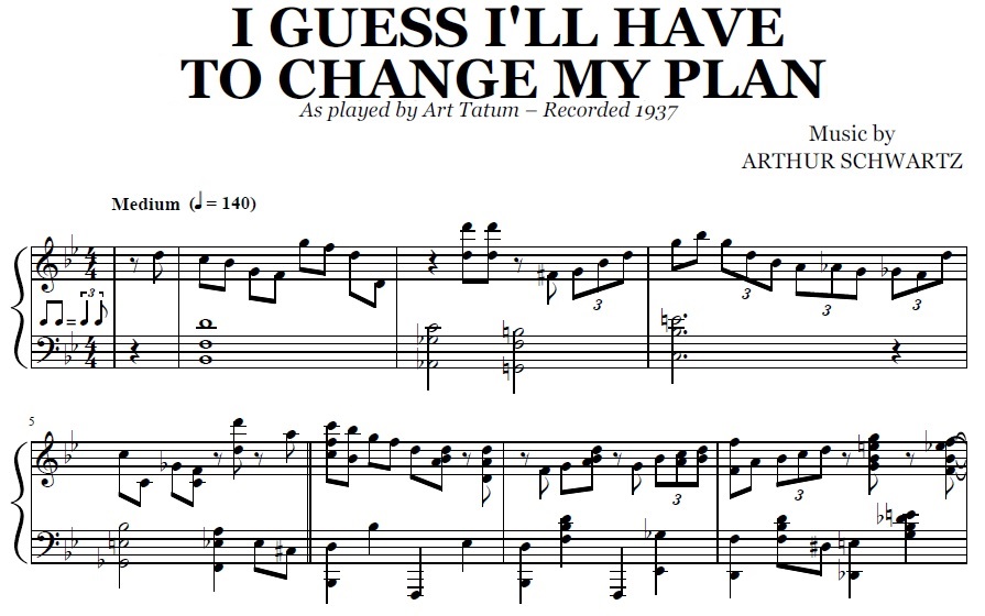 Acheter la partition en format PDF de I Guess I'll Have To Change My Plan (Art Tatum), transcrite à partir de l'enregistrement original. Vous pourrez télécharger le PDF de la partition juste après le paiement.