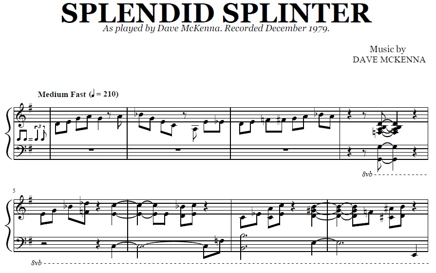 Acheter la partition en format PDF de Splendid Splinter (Dave McKenna), transcrite à partir de l'enregistrement original. Vous pourrez télécharger le PDF de la partition juste après le paiement.