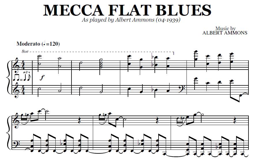 Buy the note for note transcription of Mecca Flat Blues by Albert Ammons, from the original recording. You will be able to download the PDF sheet music as soon as the payment is complete.