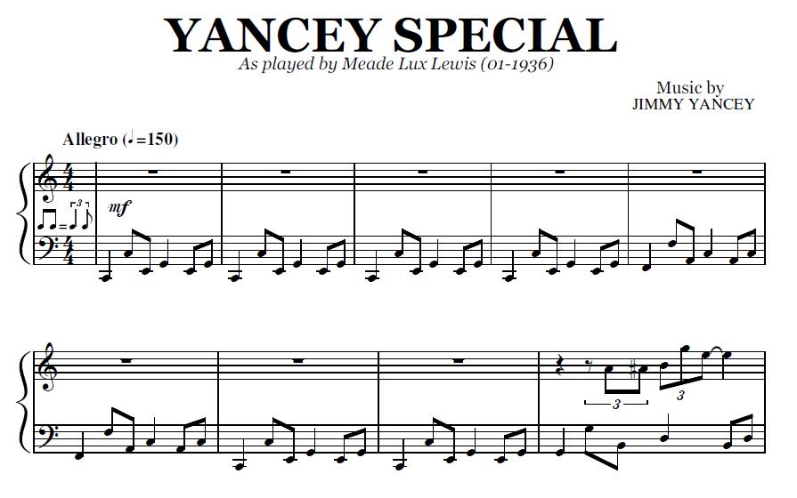 Buy the note for note transcription of Yancey Special by Meade Lux Lewis, from the original recording. You will be able to download the PDF sheet music as soon as the payment is complete.