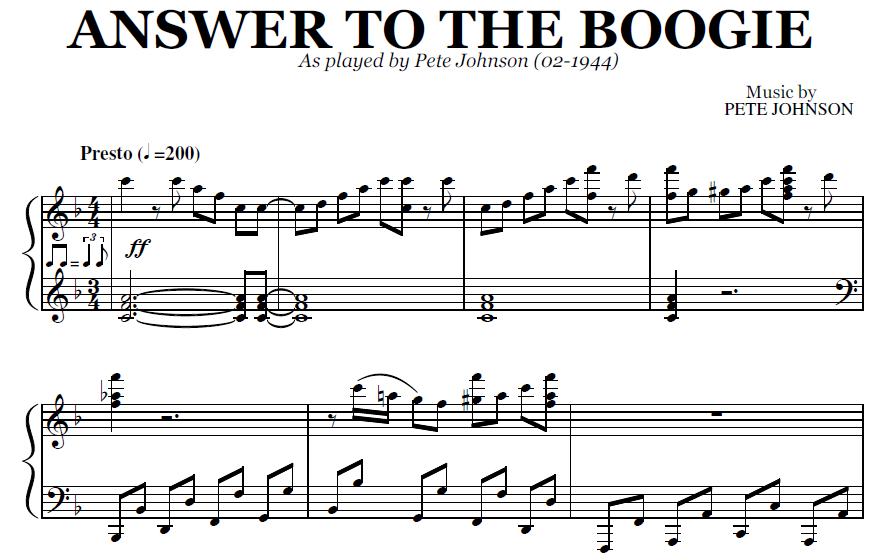 Buy the note for note transcription of Answer To The Boogie by Pete Johnson, from the original recording. You will be able to download the PDF sheet music as soon as the payment is complete.
