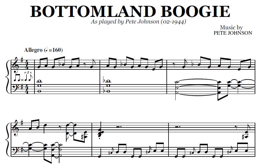 Buy the note for note transcription of Bottomland Boogie by Pete Johnson, from the original recording. You will be able to download the PDF sheet music as soon as the payment is complete.