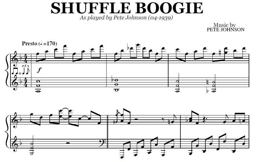 Buy the note for note transcription of Shuffle Boogie by Pete Johnson, from the original recording. You will be able to download the PDF sheet music as soon as the payment is complete.