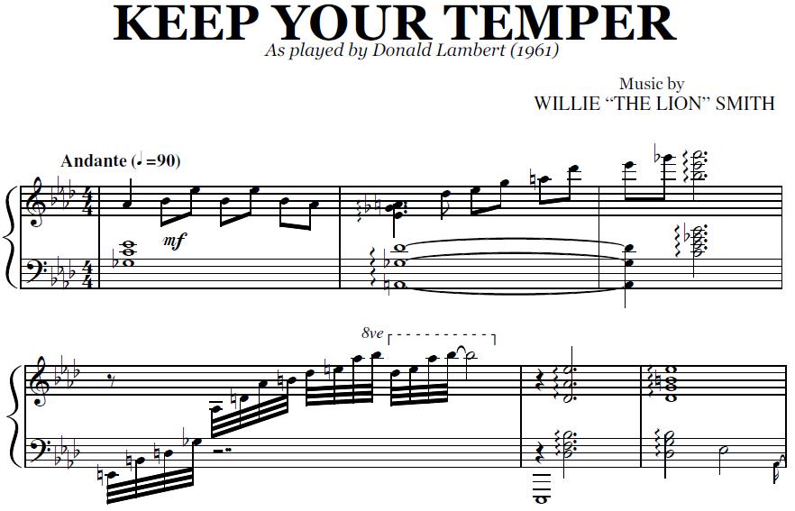 Acheter la partition en format PDF de Keep Your Temper (Donald Lambert), transcrite à partir de l'enregistrement original. Vous pourrez télécharger le PDF de la partition juste après le paiement.