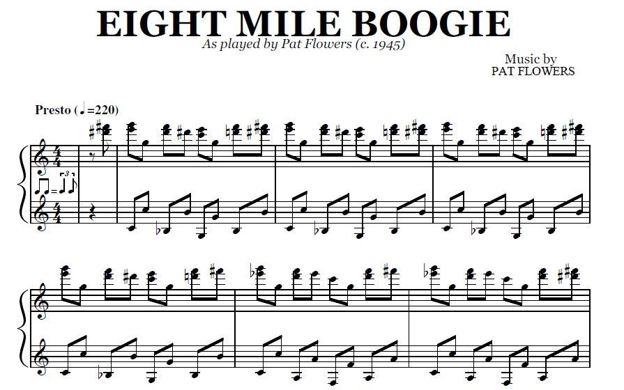 Acheter la partition en format PDF de Eight Mile Boogie (Pat Flowers), transcrite à partir de l'enregistrement original. Vous pourrez télécharger le PDF de la partition juste après le paiement.