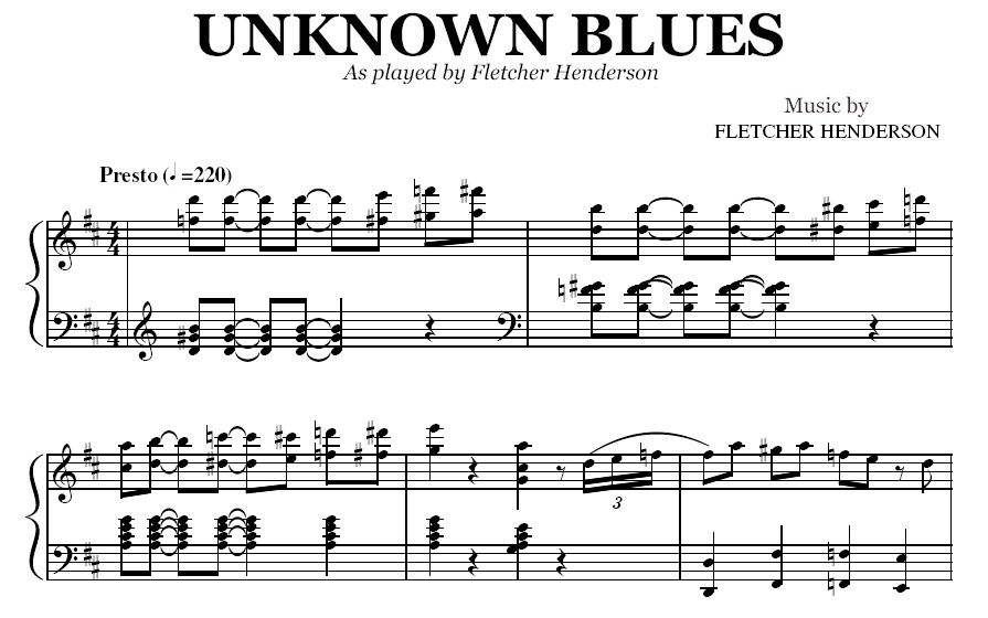 Acheter la partition en format PDF de Unknown Blues (Fletcher Henderson), transcrite à partir de l'enregistrement original. Vous pourrez télécharger le PDF de la partition juste après le paiement.