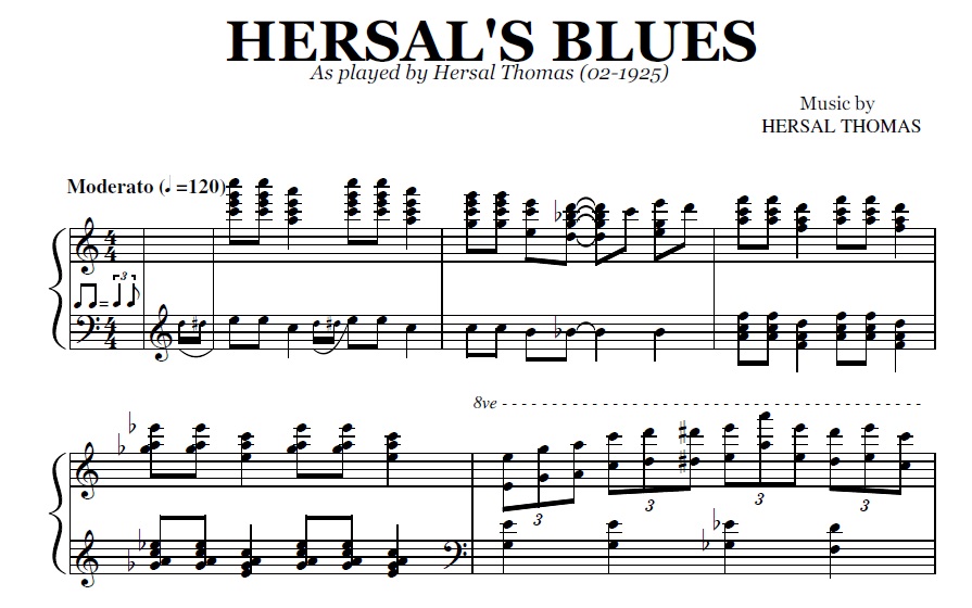 Acheter la partition en format PDF de Hersal's Blues (Hersal Thomas), transcrite à partir de l'enregistrement original. Vous pourrez télécharger le PDF de la partition juste après le paiement.