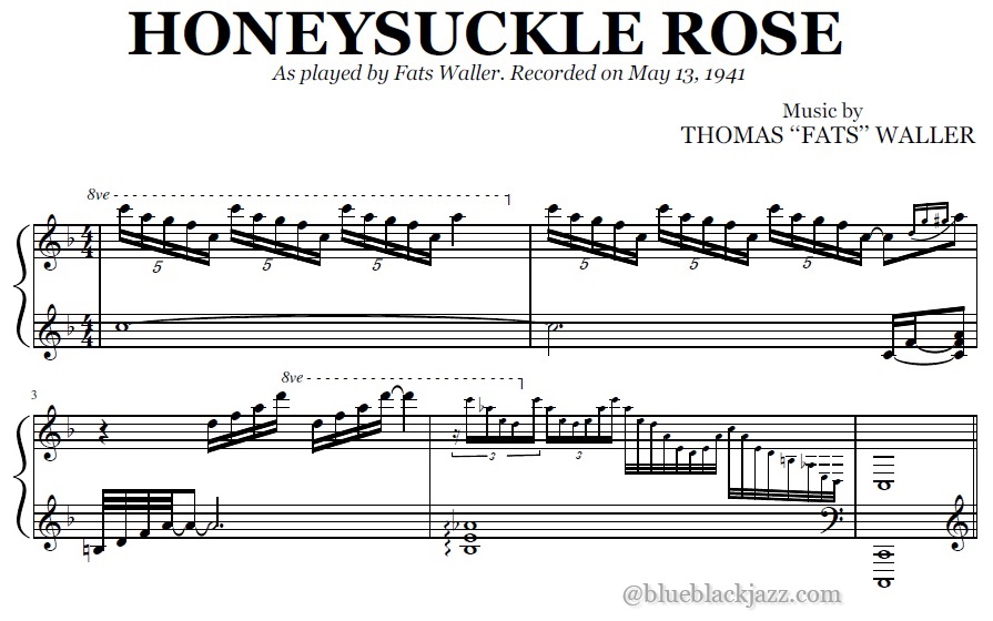 Acheter la partition en format PDF de Honeysuckle Rose (Fats Waller), transcrite à partir de l'enregistrement original. Vous pourrez télécharger le PDF de la partition juste après le paiement.