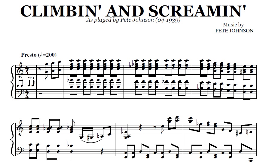 Acheter la partition en format PDF de Climbin' And Screamin' (Pete Johnson), transcrite à partir de l'enregistrement original. Vous pourrez télécharger le PDF de la partition juste après le paiement.