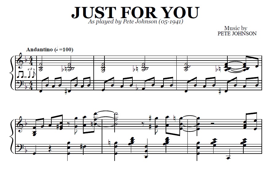 Acheter la partition en format PDF de Just For You (Pete Johnson), transcrite à partir de l'enregistrement original. Vous pourrez télécharger le PDF de la partition juste après le paiement.