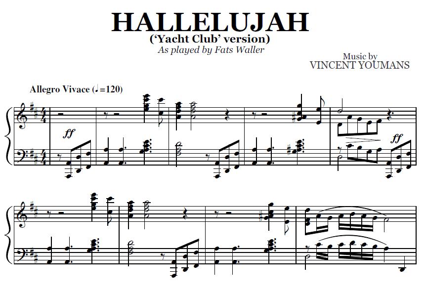 Acheter la partition en format PDF de Hallelujah (Yacht Club version) (Fats Waller), transcrite à partir de l'enregistrement original. Vous pourrez télécharger le PDF de la partition juste après le paiement.