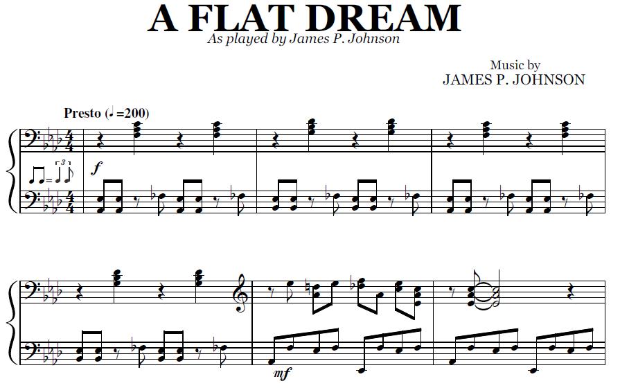 Acheter la partition en format PDF de A Flat Dream (James P. Johnson), transcrite à partir de l'enregistrement original. Vous pourrez télécharger le PDF de la partition juste après le paiement.