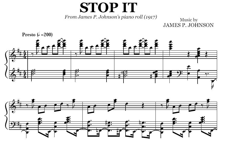 Acheter la partition en format PDF de Stop It (James P. Johnson), transcrite à partir de l'enregistrement original. Vous pourrez télécharger le PDF de la partition juste après le paiement.