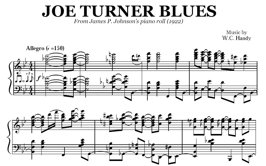 Acheter la partition en format PDF de Joe Turner Blues (James P. Johnson), transcrite à partir de l'enregistrement original. Vous pourrez télécharger le PDF de la partition juste après le paiement.