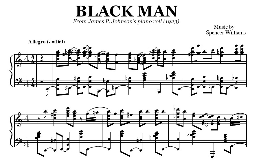Acheter la partition en format PDF de Black Man (James P. Johnson), transcrite à partir de l'enregistrement original. Vous pourrez télécharger le PDF de la partition juste après le paiement.