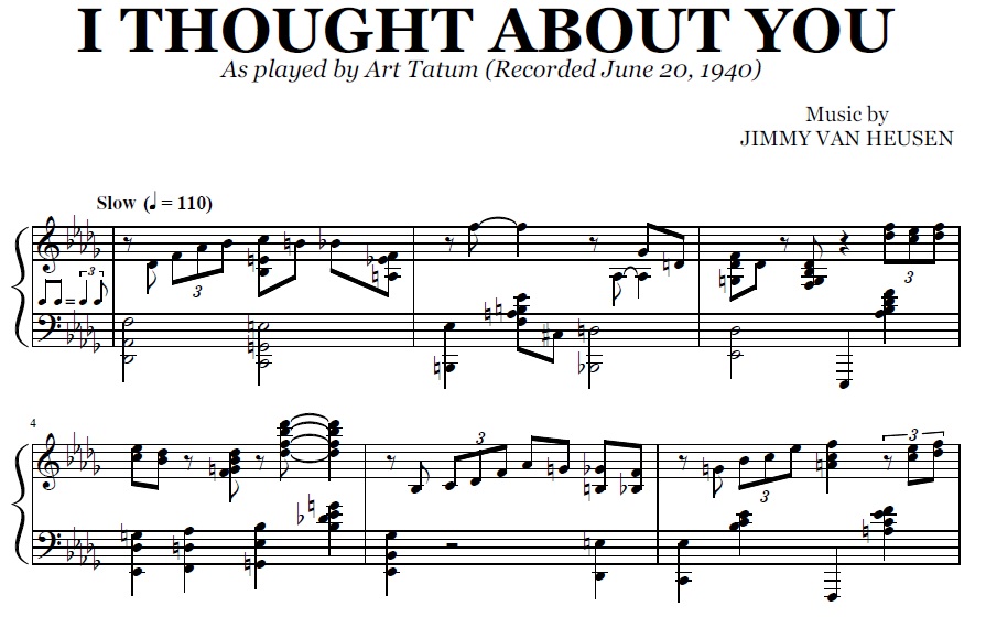 Acheter la partition en format PDF de I Thought About You (Art Tatum), transcrite à partir de l'enregistrement original. Vous pourrez télécharger le PDF de la partition juste après le paiement.